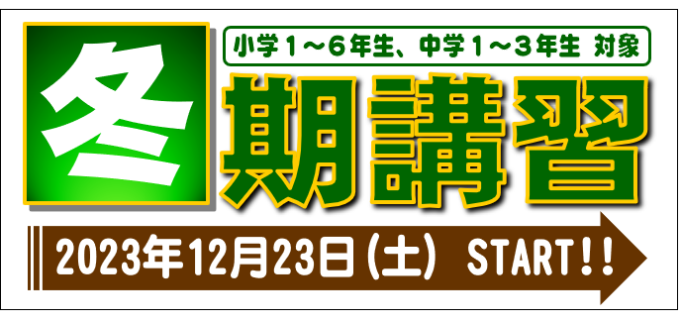 | 中3 | FS | 12/23(24)~1/6(7) | 13:00~15:55 | 40時限 | 国・数・社・理・英 |