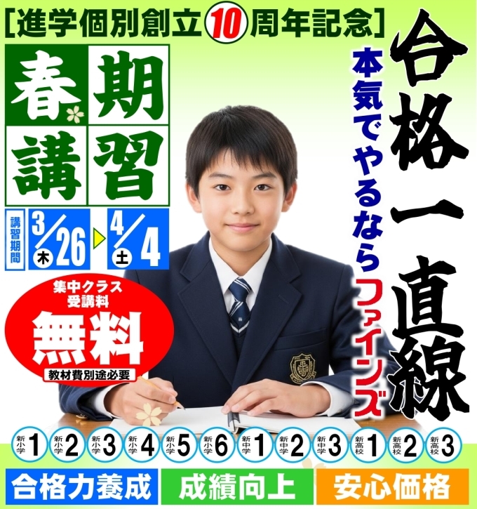 - 2026年度「進学個別ファインズ」春期講習のご案内