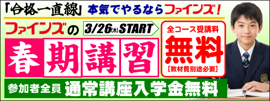 令和7年度Ⅲ期通常講座のご案内です。新学年に向けて、学び残しのないよう、復習も含めて計画的に学習に励みましょう。楽しくてためになるファインズの授業が全力でサポートしたします。新入学者も随時募集中です。