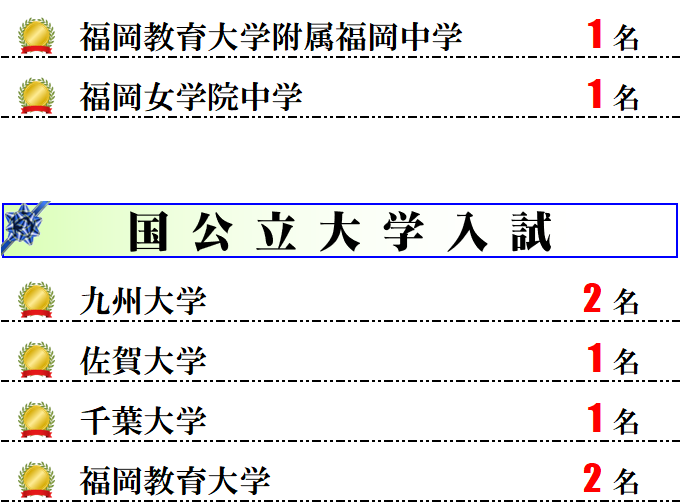 次世代ゼミファインズTOP» 合格実績 小学部コース 難関中学受験特訓 有名中学受験特訓 公立高校進学特訓 学力育成スタジアム 算数・数学パズル そろばん塾「ピコ」 中学部コース 難関高校受験特訓 公立高校受験特訓 小学部・中学部・高校部共通コース 個別指導 高校部コース 大学受験コース 福岡中央スクール 雑餉隈スクール 春日スクール 南ヶ丘スクール 白木原スクール 御笠スクール 宇美スクール 教育理念について 独自の学習システム 安心への取り組み ファインズのイベント
