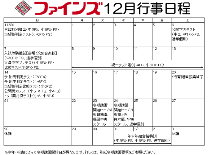 年末年始合格特訓(中3FX・FS、小6FX・FS)