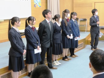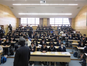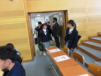 そこへ、早速生徒のみなさんがやってきました。みなさん、いよいよはじまるぞ、という緊張感であふれていて、案内のもと会場となる「二号館」へと向かっていきます。