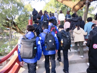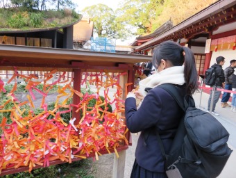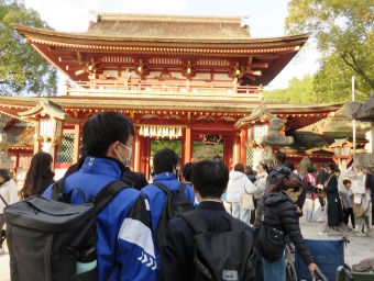 ただいま「本殿」は工事中とのことで「仮殿」にての御参拝でしたが、生徒全員、しっかり「合格祈願」していました。合格発表日のみなさんの笑顔が目に浮かぶようです。