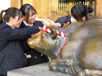 そして、ご参拝が終わったら、あとは自由時間。それぞれ「おみくじ」をひいたり(けっこう「大吉」続出でした)、太宰府天満宮に11体あるという「御神牛」を探して回ったり(全部見つけることができたらご利益ありとのこと)、また名物の「梅ケ枝餅」を買ったり、おしゃれな建物で有名な「スターバックス太宰府店」で楽しくすごしたり。そうやって、この日一日が終わっていきました。